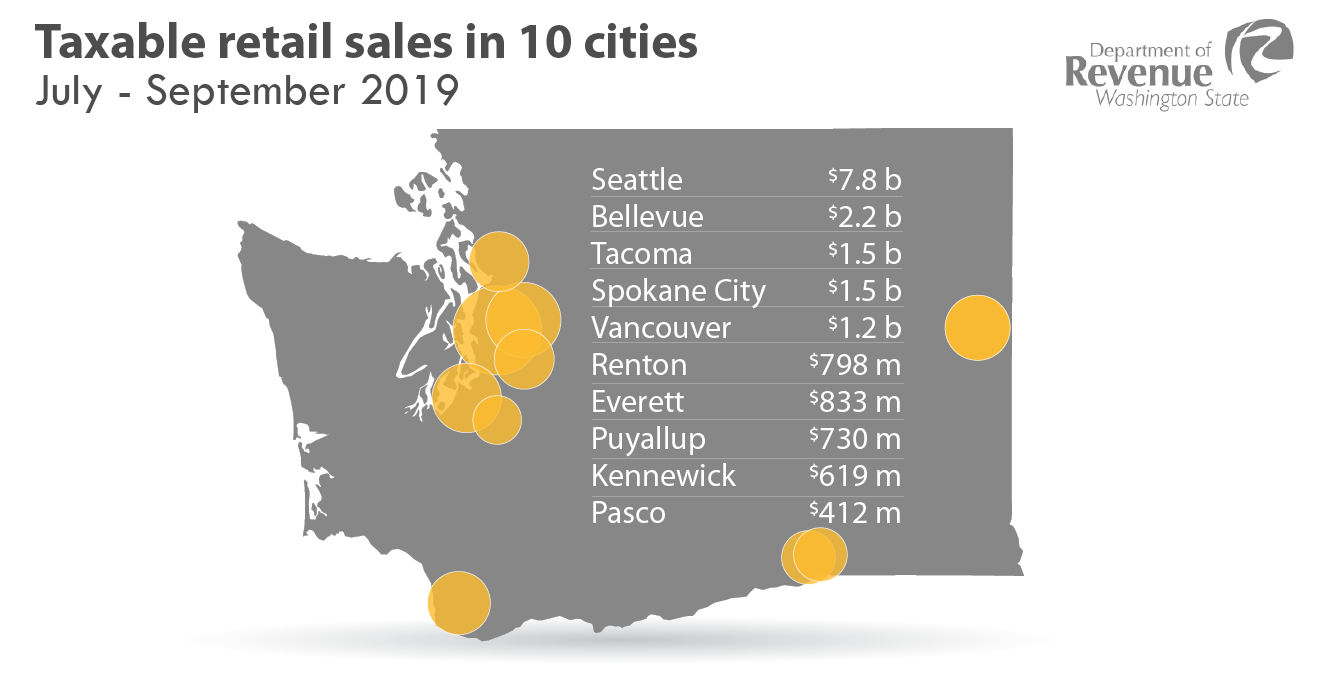 These figures are part of a quarterly report released today by the Washington State Department of Revenue. The taxable retail sales figures compare the same quarter year-to-year to equalize any seasonal effects that would influence consumer and business spending.