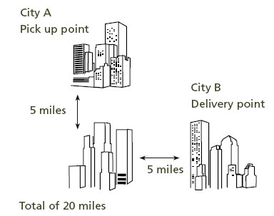 Speedy Taxi is hired to transport Mr. Jones from City A to City B. The total mileage between the pickup point and delivery point is twenty miles. However, Speedy’ route will also take Mr. Jones through City C. City B is within five miles of the corporate limits of City A, as the crow flies.