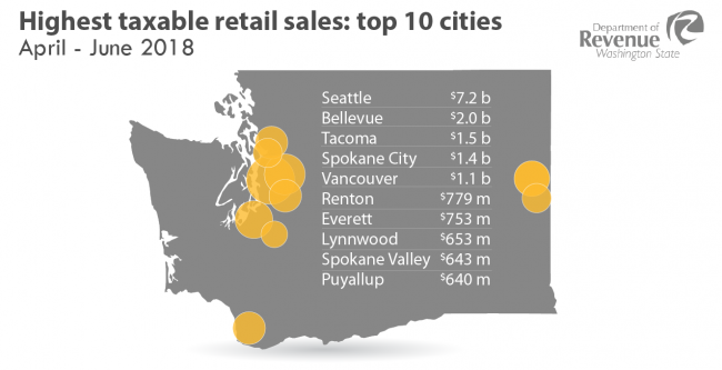 These figures are part of a quarterly report released today by the Washington State Department of Revenue. The taxable retail sales figures compare the same quarter year-over-year to equalize any seasonal effects that would influence consumer and business spending.